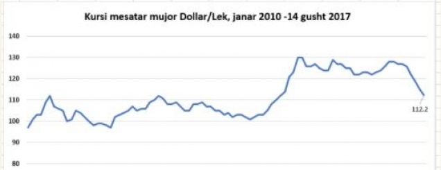 Dollari ka shënuar sot nivelin më të ulët të këmbimit ndaj monedhës vendase, që nga nëntori i vitit 2014. Sipas kursit zyrtar të Bankës së Shqipërisë, një dollar u këmbye sot me 112.2 lekë, duke rënë me 0.47 lekë në raport me një ditë më parë. VIDEO