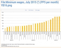 Jo vetëm në vlerë absolute, por edhe e matur nga standardet e fuqisë blerëse, Shqipëria ka pagën minimale më të ulët mes vendeve të Bashkimit Europian dhe atyre kandidate, sipas grafikëve që janë publikuar nga Eurostat, me të dhëna që i përkasin korrikut të vitit 2015 (paga minimale për Shqipërinë nuk ka ndryshuar që nga ajo kohë).