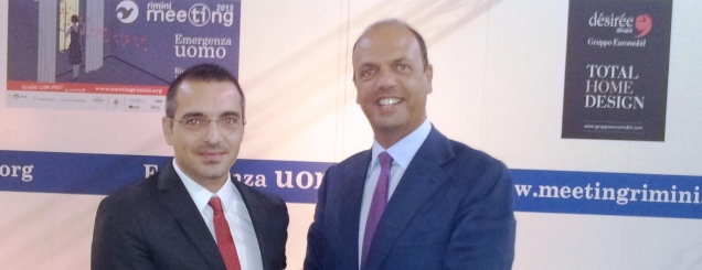 Ministri i Brendshëm i qeverisë së re, Saimir Tahiri ka qenë sot në Romë për një takim me homologun e tij italian, Angelino Alfano. "Alfano u angazhua personalisht për të mbështetur Shqipërinë për integrimin në BE, si dhe për rendin dhe sigurinë”, u shpreh Tahiri. (Në foto: Nga takimi Tahiri-Alfano).