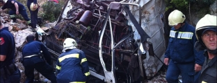Një autobus me studentë të Universitetit Aleksandër Xhuvani është rrëzuar pranë vendit të quajtur Ura e Vishës në afërsi të Himarës. Ngjarja ndodhi rreth orës 16:15. Nga aksidenti i rëndë humbën jetë 13 persona: 11 vajza dhe 2 meshkuj, mes të cilëve edhe shoferi i autobusit. Bëhet fjalë për një grup prej 33 studentësh, të cilët udhëtonin nga Saranda në një autobus me targa të Elbasanit. Dëshmitarët në vendngjarje thonë se mjeti ka rënë nga një lartësi prej 80 metra. FOTO- Nga aksidentiVIDEO EKSKLUZIVE: Tragjedia në HimarëFOTO - Të plagosurit | AUDIO - DëshmitariShoferi një ish basketbollist. Studentët: Ishte i qetë