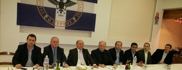 Kryetari i PBDNJ-ës, Vangjel Dule hyn në kabinet. I dyti i listës së Vlorës është kreu i OMONIA-s, Vasil Bollano. Zyrtarë të mazhorancës pohojnë se kreu i PBDNJ-së do të marrë postin e ministrit të Punës dhe sipas marrëveshjes, dorëzohet mandati dhe pasardhësi në listë bëhet deputet. Veprimtaria antishqiptare e Bollanos, ja deklaratat. (Në foto: Vasil Bollano më 26 shkurt 2011 në Thesali me anëtarët e shoqatës vorio-epiriote Pirro. Lart qëndron i varur flamuri i autonomisë së Vorio - Epirit.)