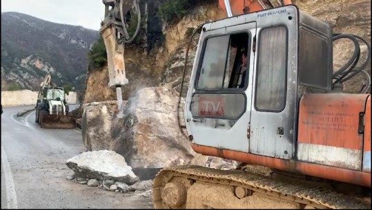 Shkëmbi që bllokoi rrugën Krujë-Qafshtamë po shkatërrohet me eskavator