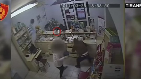 Ky është momenti kur autori i grabitjes së një farmacie mbrëmjen e djeshme largohet nga vendngjarja. Grabitja ndodhi rreth orës 21:00 pas shkollës "Sami Frashëri" në Tira
