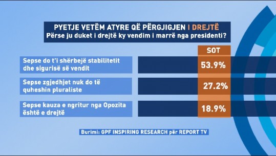 Sondazhi GPF në Report Tv/ 58.9% e shqiptarëve kundër dekretit të Presidentit për anulimin e zgjedhjeve