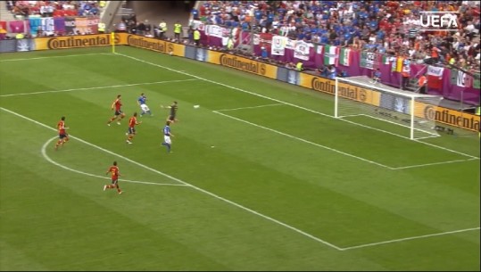 Dramatike ka rezultuar gjysmëfinalja e parë e kampionatit europian ku Italia ka mposhtur vetëm me penallti Spanjën. 120 minutat u mbyllën me shifrat 1-1, ndërsa nga 11-metrat spanjollët nuk u treguan të saktë. Për Italinë kjo do jetë finalja e dytë në tre Europianët e fundit.