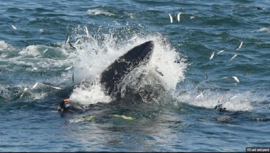 Momente tmerri ka kaluar zhytësi profesionist afrikano-jugor, 51 vjeçari Rainer Schimpf, i cili ndërsa ishte zhytur në ujrat e Port Elizabeth Harbour në Afrikën e Jugut, u gjend papritur në gojën e një balene dhe rrezikoi të gëlltitej nga bisha e detit ndërsa ajo kishte dalë për të gjuajtur.Schimpf po dokumentonte me grupin