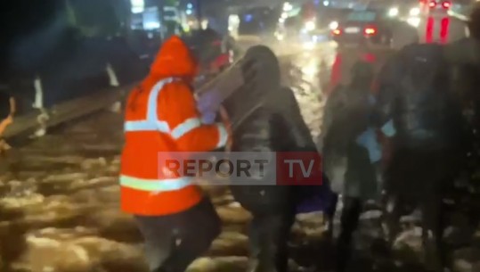 Aksi rrugor Elbasan-Librazhd është prej disa orësh i bllokuar, ndërsa stuhia e shiut sa vjen bëhet edhe më e shpeshtë dhe furishme.Qytetarët e bllokuar në automjetet e tyre po ndihmohen nga polica rrugore për t’u evakuuar. Në pamjet e siguruara nga Report Tv, shihet qartë momenti, kur ata merren nga punonjësit e policisë.<