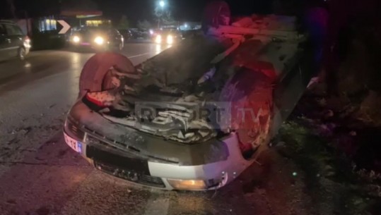 Aksident në aksin Elbasan-Papërr, makina përmbyset në rrugë, shpëton për mrekulli shoferi