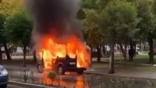 Përfshihet nga flakët një automjet në ecje, tymi masiv ‘pushton’ qendrën e Elbasanit, kalimtarët në panik