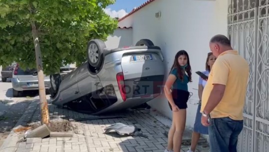 Një aksident i frikshëm është regjistruar në Vlorë mëngjesin e sotëm. Sicc duket nga pamjet e siguruara nga Report Tv, makina është kthyer përmbys por fatmirësisht drejtuesja e mjetit, një vajzë, ka shpëtuar pa lëndime të mëdha. Aksidenti ka ndodhur për shkak të devijimit nga drejtuesja e