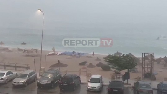 Reshje të dendura shiu kanë "pushtuar" ditën e sotme qytetin e Vlorës. Siç shihet në videon e sjellë nga gazetari i Report Tv, era e fortë "ka marrë me vete" çadra e shezlonge, duke u shkatërruar pushimet plazhistëve.
