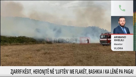 'Report Tv' mëson se në Vlorë, një prej qarqeve më të prekur nga zjarret, ku lufta me flakët vijon prej 14 ditësh tashmë, Bashkia e Vlorës nuk iu ka dhënë pagat e gatishmërisë zjarrfikësve që prej dy muajsh, duke mos u dhënë asnjë lekë për orët shtesë