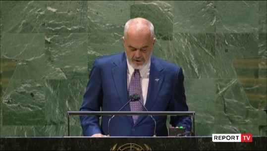 Kryeministri Edi Rama po mban fjalën e tij në Asamblenë e Kombeve të Bashkuara, duke vënë theksin te disa nga sfidat kryesore në botë sot. Rama foli dhe për integrimin e Shqipërisë në BE. Ai theksoi se vendi jonë është gati tani Be duhet të bëjë pjesën e saj. “Duhet të vazhdojmë të