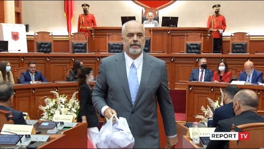 Incidenti i parë në Kuvend, Rama mbledh fletët e grisura nga opozita, nxehet Këlliçi: Janë materiale zgjedhore, mos i prek! Kryeministri i çon qesen mbrapsht, Rushaj i derdh sërish në tokë