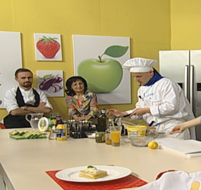 Ai ka gatuar “Salmon me salcë portokalli” dhe “Ëmbëlsirë me gjizë të freskët”.