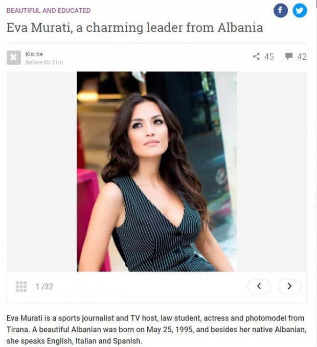 Kështu e nis artikullin e saj për Eva Muratin gazeta prestigjioze boshnjake “klik.ba”, për bukurinë e së cilës duket se është dëgjuar përtej Shqipërisë.