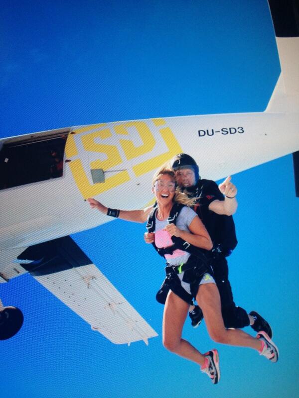 Ajo ka publikuar disa foto në faqen e saj zyrtare në Twitter, ku shfaqet duke u hedhur nga një avion me parashutë.