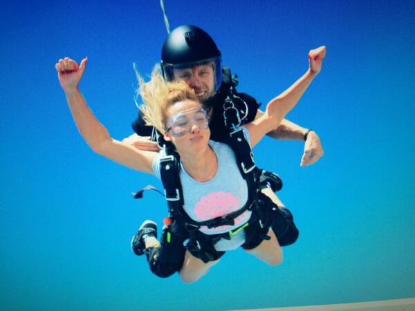 Ajo ka publikuar disa foto në faqen e saj zyrtare në Twitter, ku shfaqet duke u hedhur nga një avion me parashutë.