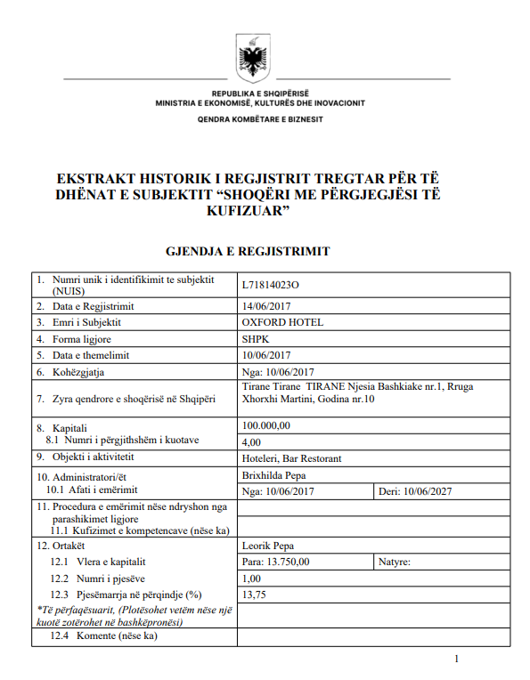 Ndonëse mund të jetë më shumë, “Pepa Group” SHPK e familjes Pepa, e cila u sekuestrua sot nga SPAK, rezulton zyrtarisht si një shoqëri që ka arritur të regjistrojë një xhiro vjetore deri në 1.5 miliardë lekë në vitin 2023, por operon në tregun vendas prej vitit 2014. Administratore e shoqërisë është Violeta Pepaj. Ortakët e shoqërisë janë Leorik Pepa 25%, Urjola Pepa 25%, Brian Pepa 25% dhe Brixhilda Pepa 25%.