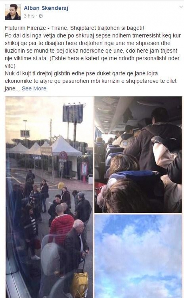 Këngëtari ka ndarë eksperiencën e tij por edhe të dhjetëra shqiptarëve që i kanë shkruar për të adresuar ankesën e tyre rreth vështirësive që kanë për të fluturuar nga Firenze drejt Tiranës.