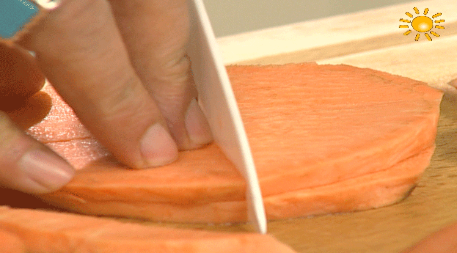 Ndërkohë zonja Tefta ka vijuar me përgatitjen e recetave, ku padyshim spikati patatja e ëmbël, e cila është përgatitur me qepë, rozmarinë, hudhër, sherebelë, piper i zi dhe lëng mishi.