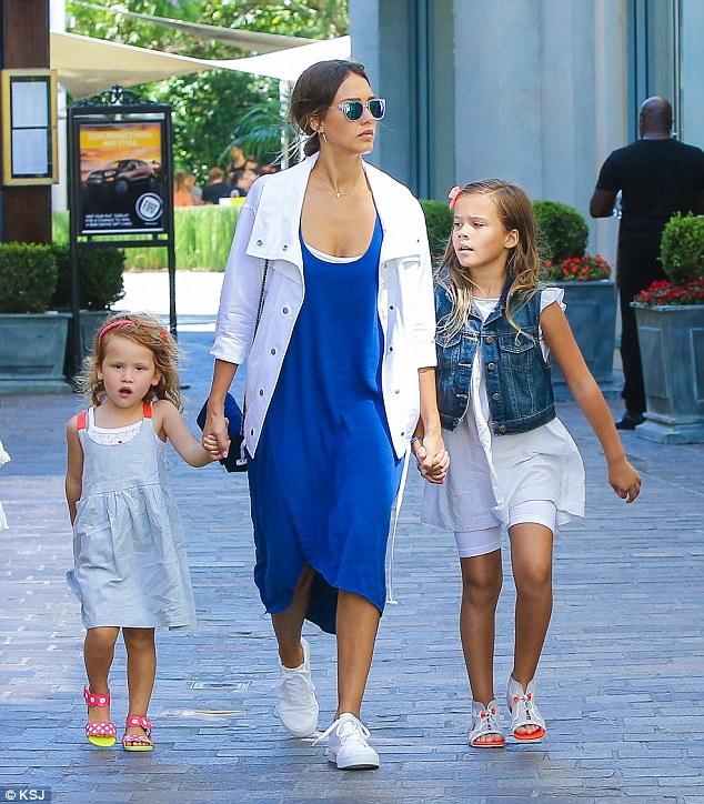 E veshur me kostum aktorja 34-vjeçare është fotografuar nga paparacët në Kaliforni duke u drejtuar për tek biznesi i saj i produkteve kozmetike “The Honest Company”.