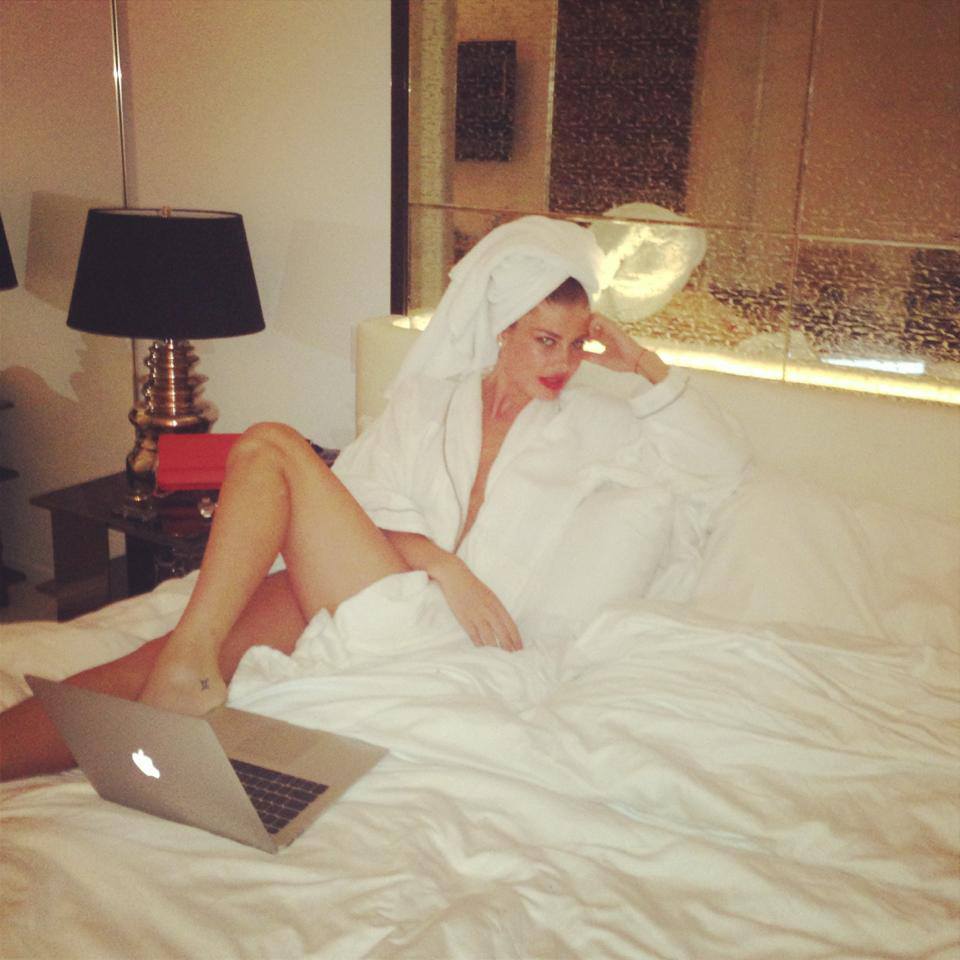 Provokuese dhe seksi, e shtrirë në krevatin e saj të gjumit, mbledhur me një peshqir, ku bien në pah këmbët e kuruara shfaqet modelja Angela Martini në një foto.