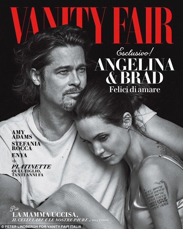 Dyshja simpatike, Brad Pitt dhe Angelian Jolie, kanë pozuar së fundmi në një set fotografish intime, të realizuara nga fotografi Peter Lindbergh për Vanity Fair. Angelina që vetëm së fundmi pohoi se ajo dhe Brad kanë zënkat e tyre si çdo çift tjetër, por do të qëndrojnë gjithnjë pranë njëri-tjetrit, ka shtrirë kokën në kraharorin e bashkëshortit të saj (që rastësisht është një nga meshkujt më të lakmuar në botë).