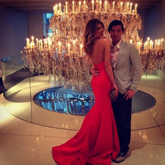 Modelja ka zgjedhur të veshë një fustan të kuq, të gjatë  deri në fund të këmbëve duke treguar një anë mjaft seksi por elegante të saj.