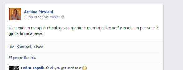 “U cmendëm me gjoba!!!nuk guxon njeriu të marri një ilaç në farmaci...un për vete 3 gjoba brenda javës,”-ka shkruar Mevlani.