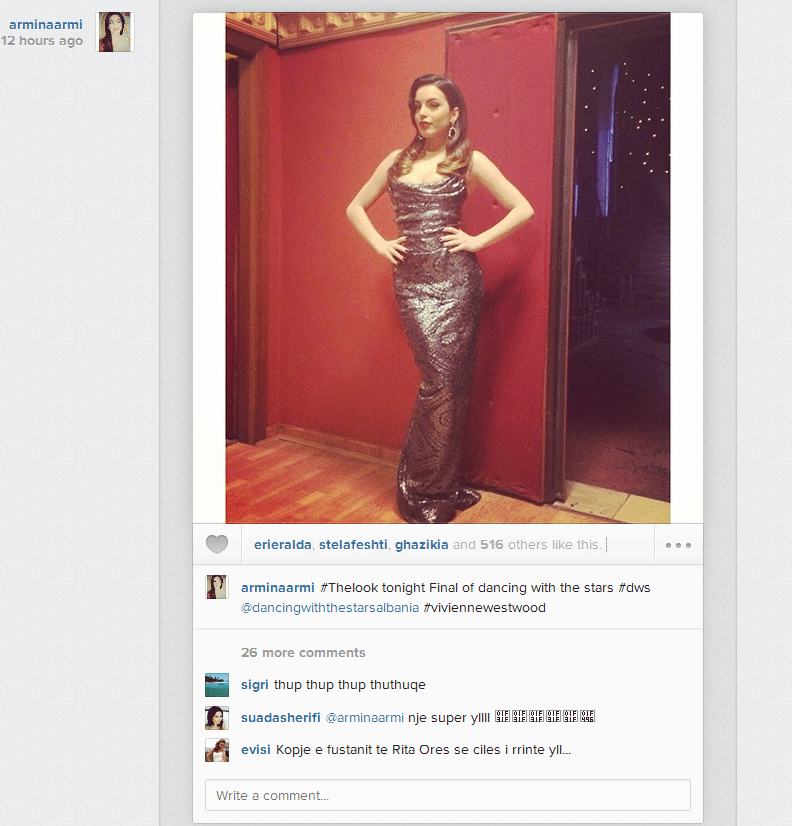 Më pas edhe Armina ka postuar një foto në “Instagram” ku shfaqet e veshur me fustanin gri rrëzëllitës.