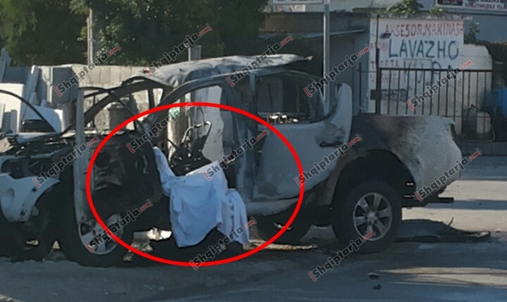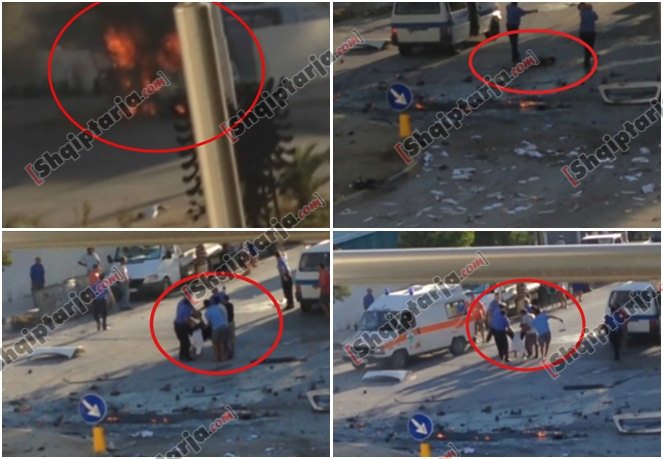 (Në foto: Makina e shpërthyer në Vlorë me rreth të kuq viktima) Foto të tjera