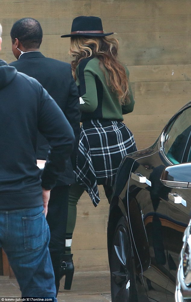 Bey shihet e veshur me pantallona, bluzë të lirshme rreth belit dhe një tjetër këmishë të lidhur në mesin e saj, ndërsa Jay-Z shihet i veshur “casual”.