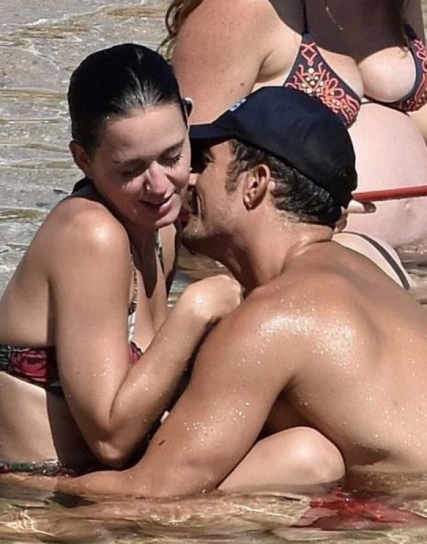 Në foto shihen qartë disa momente intime ku aktori 39-vjeçar i prek gjoksin këngëtares 31-vjeçares dhe puthen me ngrohtësi. Orlando nuk ka ngurruar të heq edhe pantallonat dhe këtë gjë e ka bërë në një plazh publik. Aktori anglez vetëm dy ditë më parë është fotografuar teksa bënte plazh tërësisht nudo.