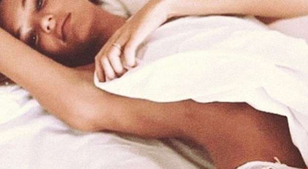 Në këtë foto ëngjëlli i Victoria’s Secret shfaqet e mbuluar vetëm me një çarçafë, ndërkohë që është e shtrirë në shtrat.