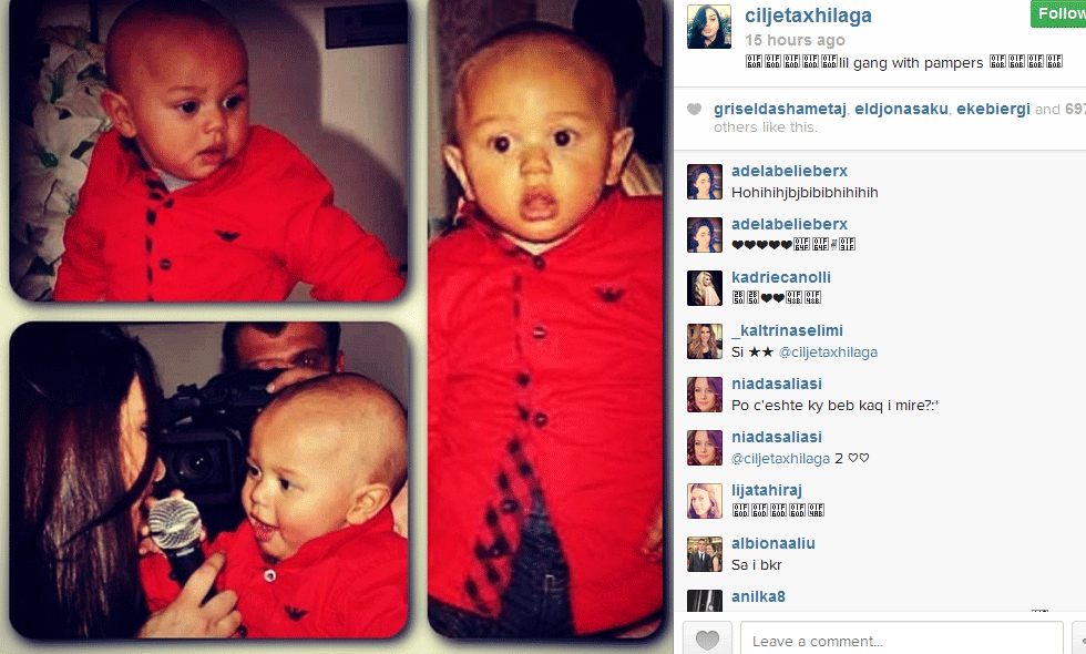 Ka qenë vetë këngëtarja, e cila ka postuar disa foto në rrjetet sociale, ku shfaqet duke kënduar, ndërkohë që aty ndodhet edhe vogëlushi bukurosh.