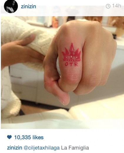 Tatuazhi i saj në gishtin tregues ishte pikërisht një kurorë ku shkruhej poshtë “OTR”.