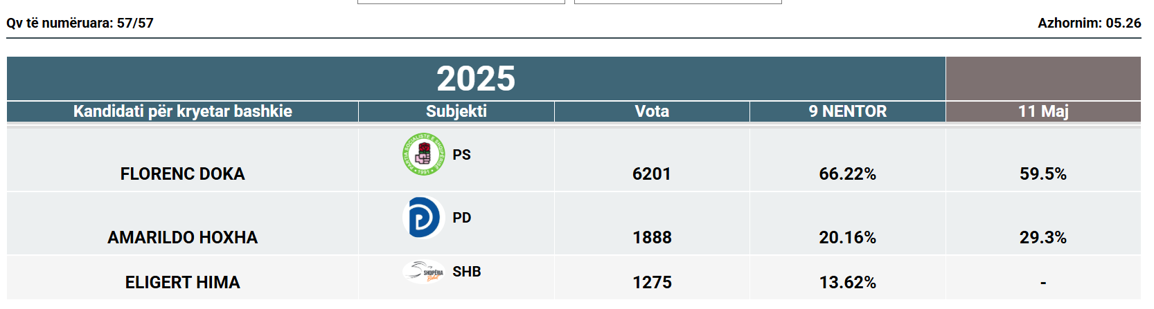 CËRRIK/ Socialisti Doka fiton me 66% të votave, i pavaruri i Berishës ruan vendin e dytë me 613 vota diferencë nga Shqipëria Bëhet