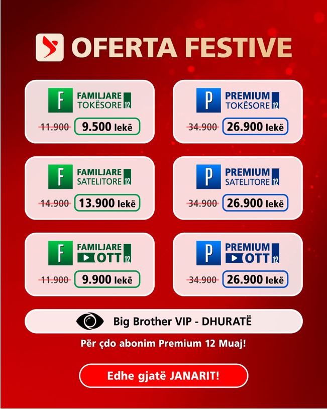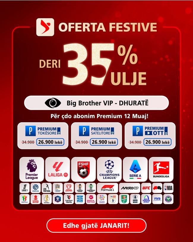 Për të gjithë abonimiet Premium 12 Mujore, vijon oferta e pabesueshme me zbritje deri në 35%. DigitAlb, ju pret në cdo pikë shtje të autorizuar, kudo në Shqipëri dhe jashtë saj, si dhe në çdo kohë në faqen zyrtare www.digitalb.al.