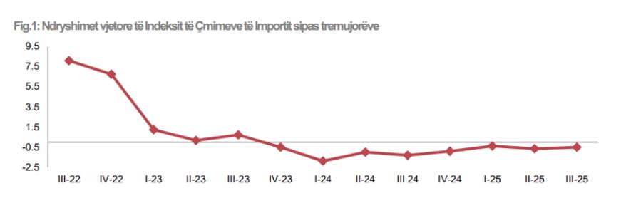 Në krahasim me tremujorin e dytë të vitit 2025, indeksi i çmimeve të importit shënoi një ulje prej 0,2%.