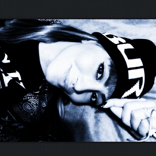 Me veshje karakteristike të këtij stili, kapele dhe piercing e ri që ka vënë në hundë.