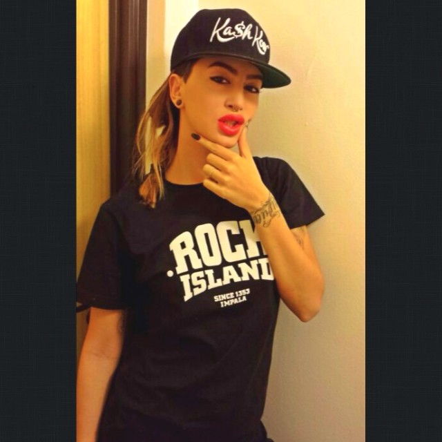 Me veshje karakteristike të këtij stili, kapele dhe piercing e ri që ka vënë në hundë.