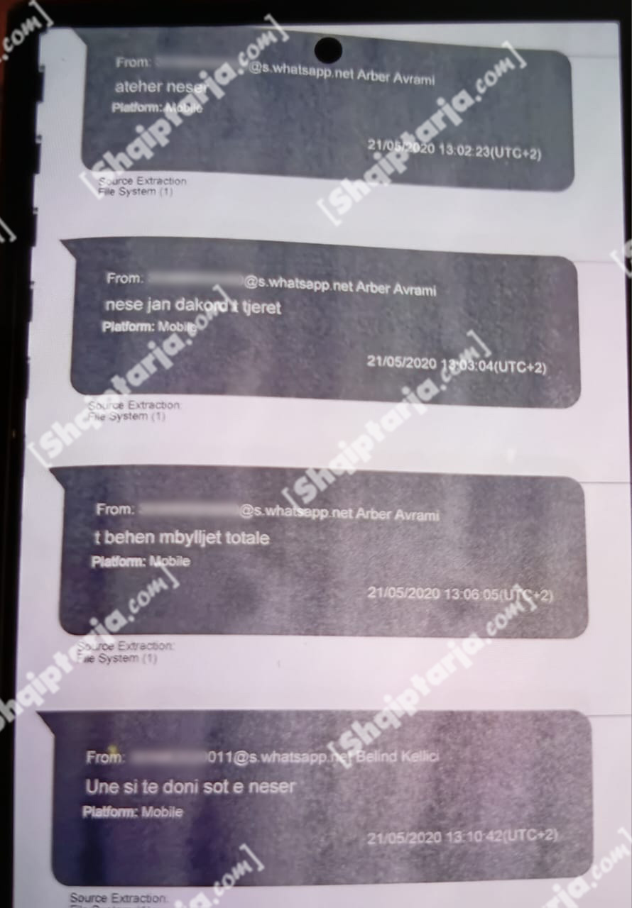 Mesazhet në këto dy screenshot shkëmbehen mes Belind Këlliçit dhe një personazhi tjetër Arbër Avramit. Në atë kohë Avrami ishte vartës i Belinda Ballukut pasi prej vitesh drejtoi kompaninë shtetërore të gazit, “Albgaz”, në varësi të Ministrisë së Energjisë. Arbër Avrami u riemërua edhe dy herë të tjera ngas Balluku në atë pozicion me mandat 3-vjeçar, 6 prill 2021 dhe më 15 prill 2024, për t’u larguar më pas shtatorin e 2024-s. Avrami konsiderohet si një prej njerëzve më të afërt të Belinda Balluku, ndërsa është raportuar kjo fotoja nga mediat më herët teksa shihet vetë kreu i “Albgaz” që shoqëron ministren teksa kryen blerje në dyqane luksoze në Athinë.