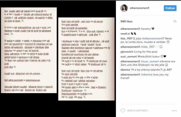 Ndërsa profili i Osmanit është pushtuar nga postime të luleve dhe zemrave ajo ka publikuar edhe një poezi të cilën e ka shkruar vetë.