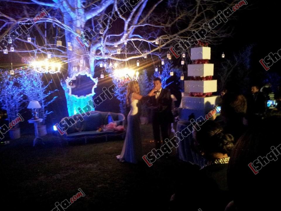 Në këtë foto siguruar nga A1 Report shohim sesi dhëndri, Erion Veliaj, i puth dorën bashkëshortes së tij Ajolës duke dhuruar momente romantike për të pranishmit.