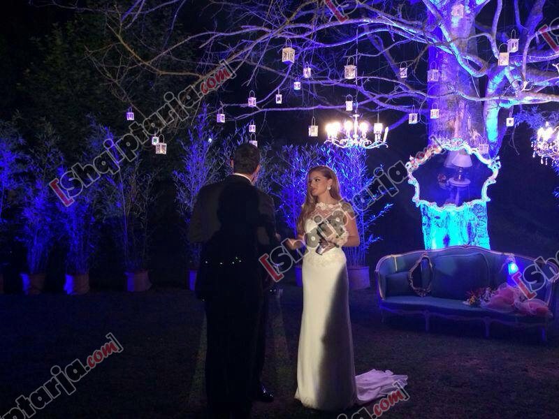 Në këtë foto siguruar nga A1 Report shohim sesi dhëndri, Erion Veliaj, i puth dorën bashkëshortes së tij Ajolës duke dhuruar momente romantike për të pranishmit.