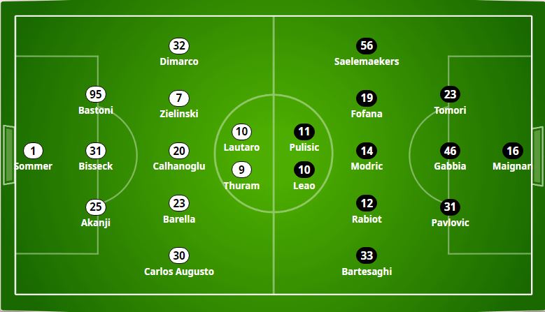 Trajneri i Interit, Cristian Chivu pritet të hedhë në fushë një formacion sulmues, me skemën 3-5-2. Dilema e vetme është ajo në mesfushë, nëse nga minuta e parë do luajë Zielinski apo Sucic. Duket se polaku ka më shumë gjasa që të ketë një fanellë titullari.