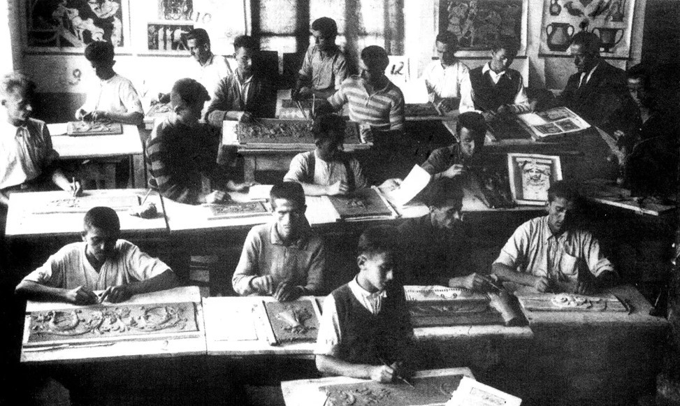 Në vitin 1933 kemi zyrtarizimin e shkollës së parë, kushtuar Artit Pamor, me emërtimin "Shkolla e vizatimit". Ndërtesa, ku u ngrit Shkolla e vizatimit, ka qenë ndër më të bukurat e kohës, dmth gjatë harkut të viteve 30. Një shtëpi banimi e Prefektit të parë të Tiranës, Qamil Pepa. Aty studiuan emra të rëndësishëm të Artit Shqiptar, të cilët fituan bursa të merituara në akademitë e Romës, Firences, Parisit,Torinos etj. Vlen për t'u përmendur, që në Tiranë, gjatë vitit 1933, kemi ndërtimin e Kompleksit të Ministrive, hapjen e Bulevardit të Madh, zyrave të fashos, sot Universiteti i Tiranës , ngrihet ngrehina, ku sot kemi Institutin e Arteve, Muzeu Arkeologjik, Kolonat dhe Stadiumin Olimpik "Qemal Stafa".
