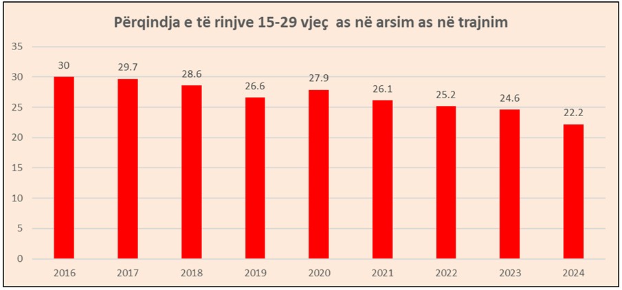 Megjithë përpjekjet, sistemi arsimor në vend nuk po mund të lidhet me nevojat e tregut të punës dhe cilësia e të nxënit ka pësuar ulje. Luhatjet në arsim dhe punësim e kanë çorientuar rininë, e cila, në vend që të reagojë dhe të kërkojë llogari, po zgjedh largimin.