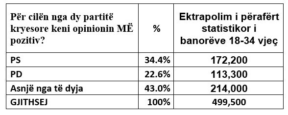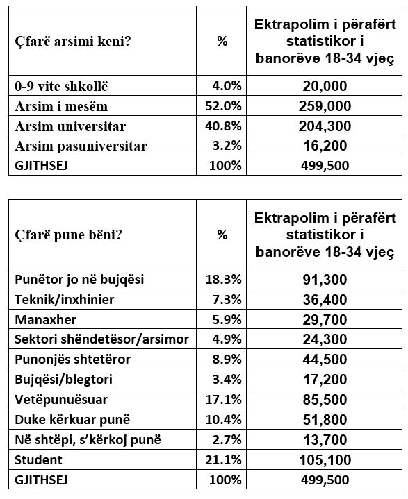 Plot 56% e tyre nuk kishin përfunduar arsim universitar/pasuniversitar; 13.1% e tyre nuk ishin as në punë e as në shkollë; dhe 43% e tyre nuk simpatizonin asnjë nga dy partitë e mëdha.